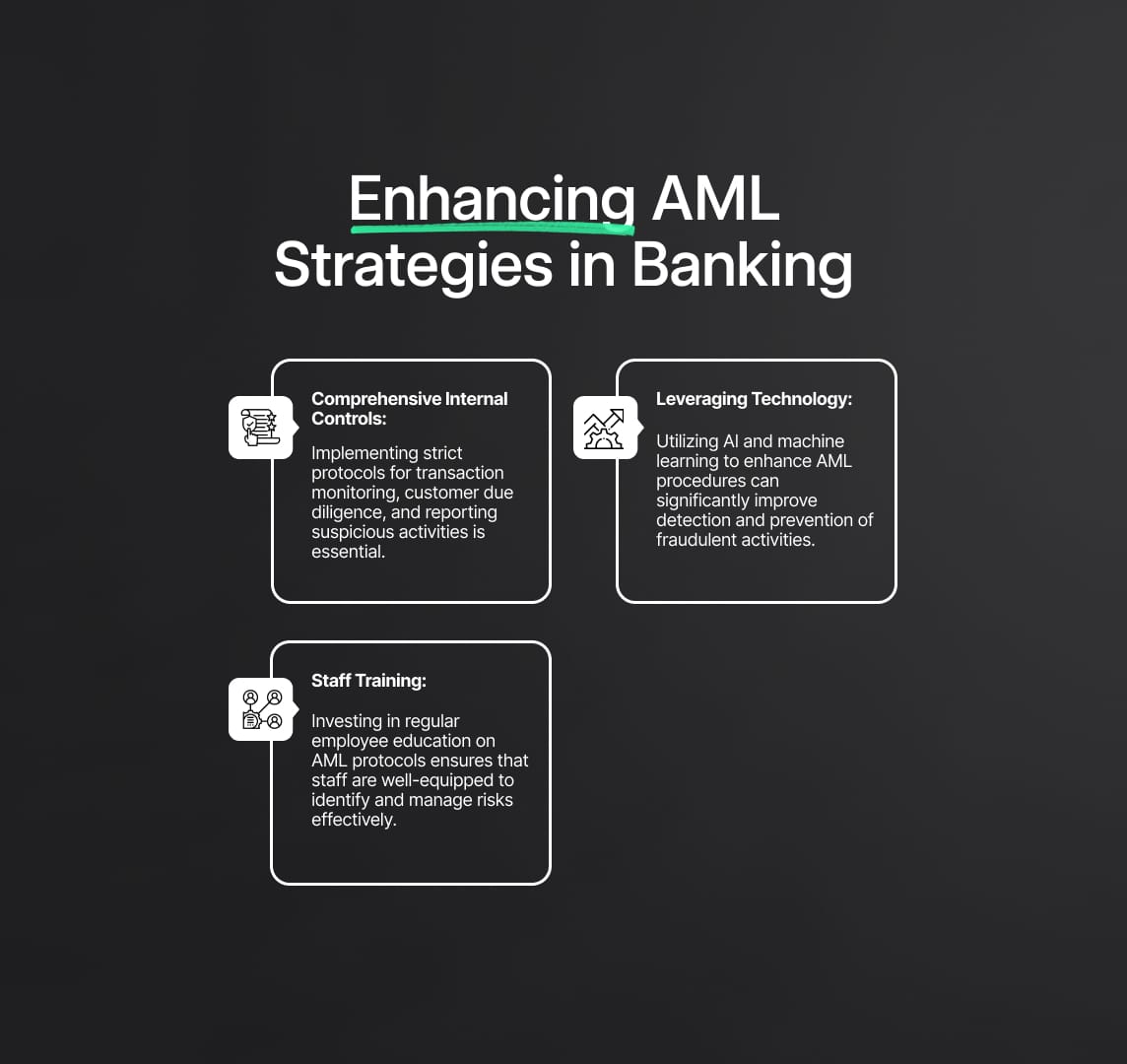 Financial institutions are being prompted to reevaluate and strengthen their AML compliance processes due to the increased emphasis on internal procedures. It is more important than ever to invest in staff training. Employees are better able to recognize and manage risks when they are trained on the most recent AML laws and procedures. Furthermore, the correct and timely updating of customer data is becoming increasingly dependent on the integration of new technology, especially artificial intelligence (AI), which helps banks maintain an advantage in the fight against money laundering.