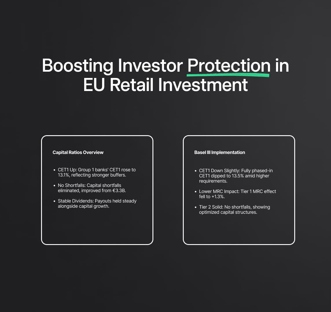 - Reduction in Tier 2 Capital Shortfalls: There were no Tier 2 capital shortfalls reported, compared to a €3.3 billion shortfall previously. This reduction reflects ongoing efforts to optimize capital structures in line with Basel III's phased implementation. Tier 2 capital remains essential for absorbing losses, albeit at a lower priority compared to Tier 1.