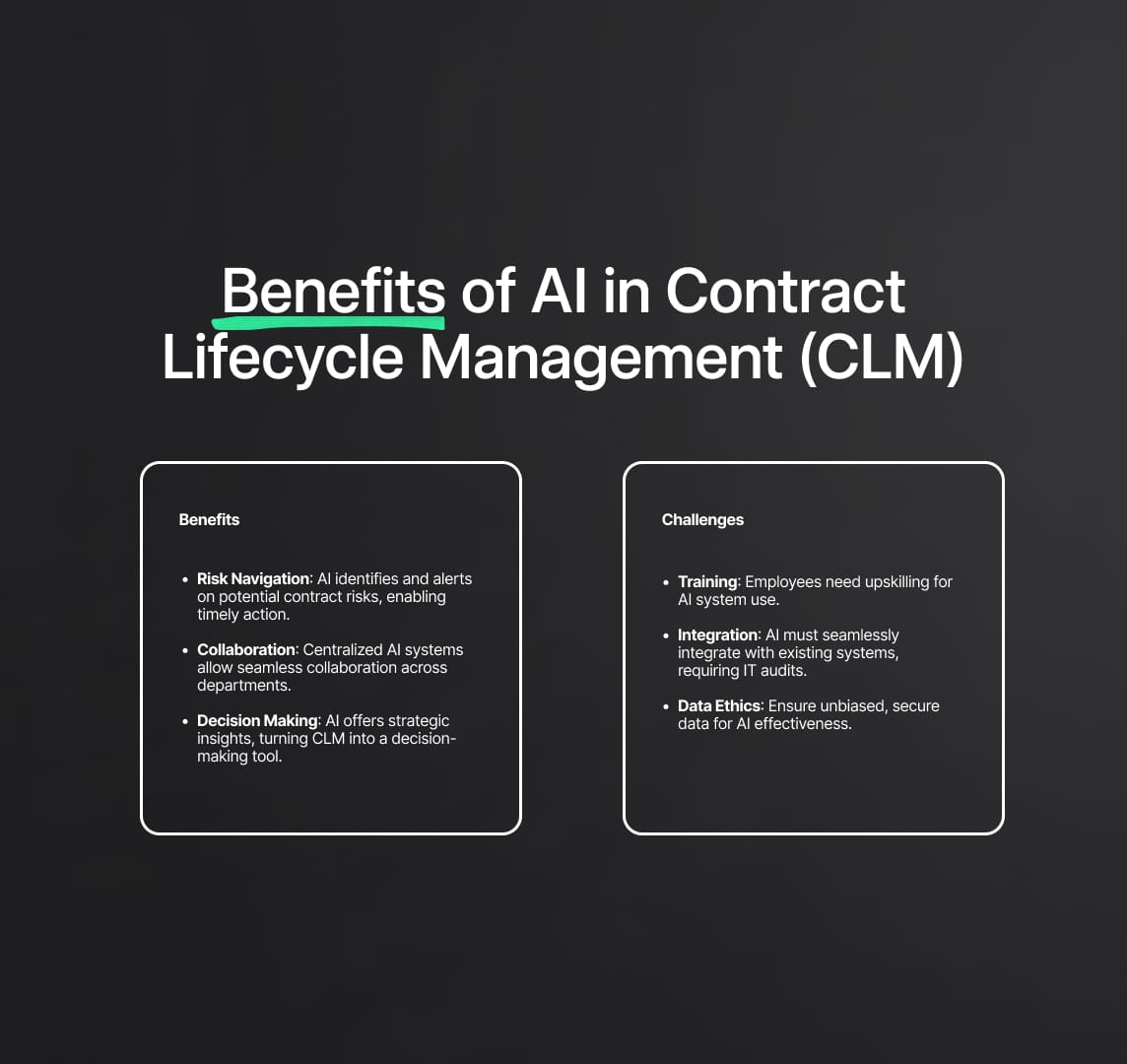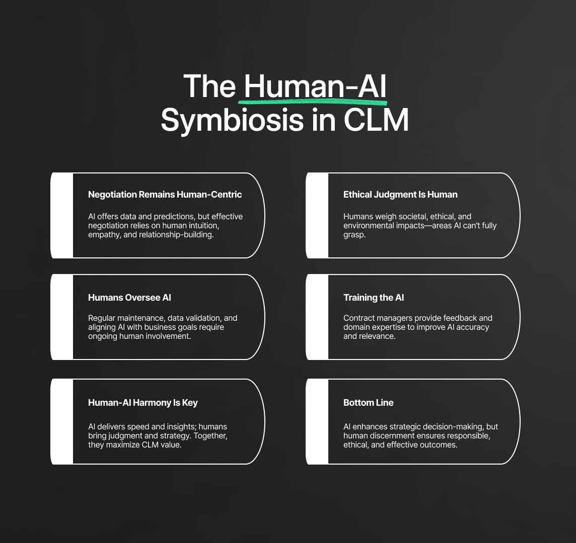 AI revolutionizes Contract Lifecycle Management (CLM), elevating contract managers from administrative roles to strategic contributors. While AI offers unprecedented insights and efficiency, it's the synergy between human intuition and machine precision that pushes operational excellence.