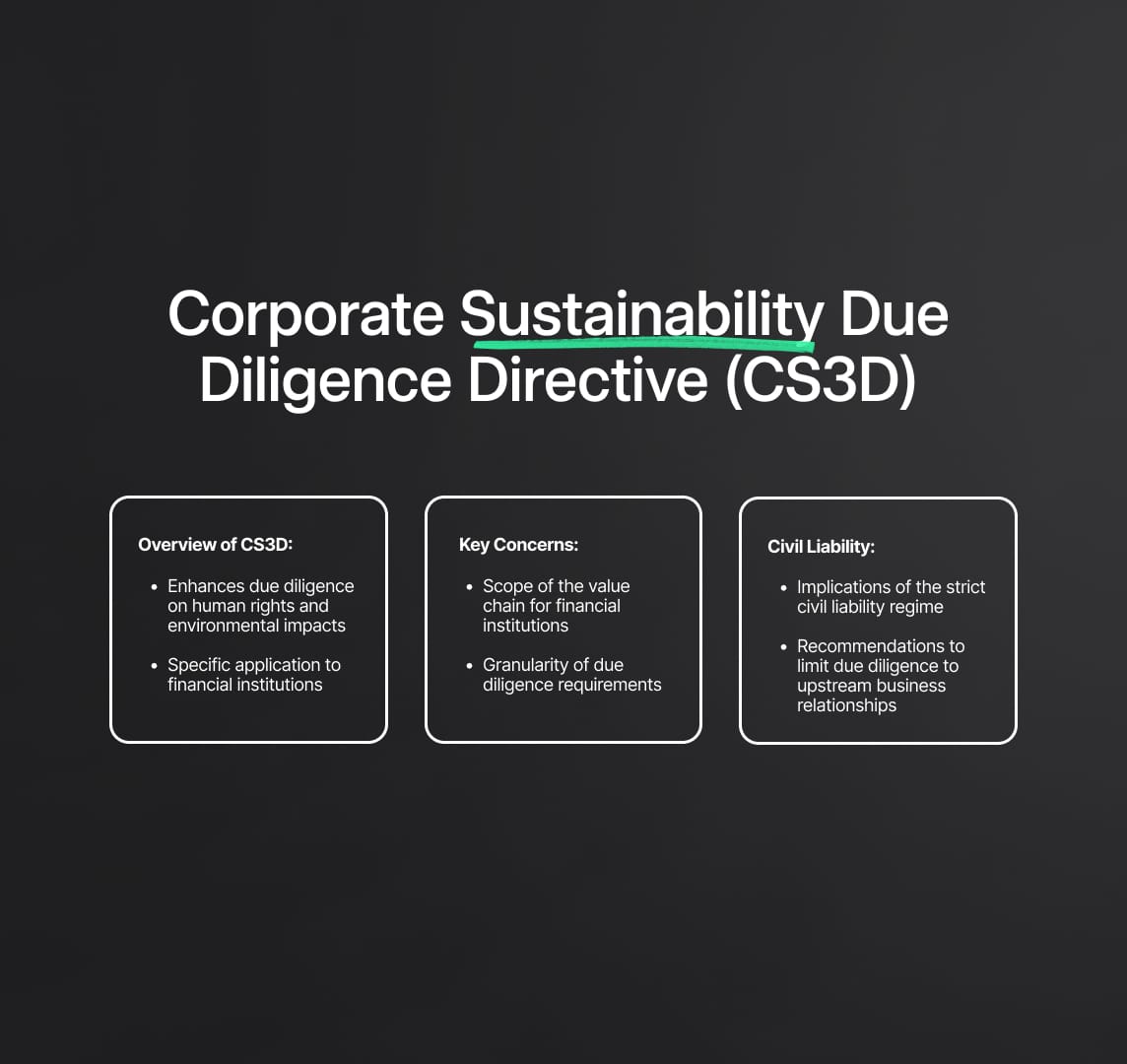 Moreover, these new requirements might force financial institutions to avoid dealing with companies where risks are harder to assess, creating a competitive advantage for regional competitors outside the CS3D's reach. This scenario could potentially disrupt the institutions' business and challenge their role in financing the transition to more sustainable business models.