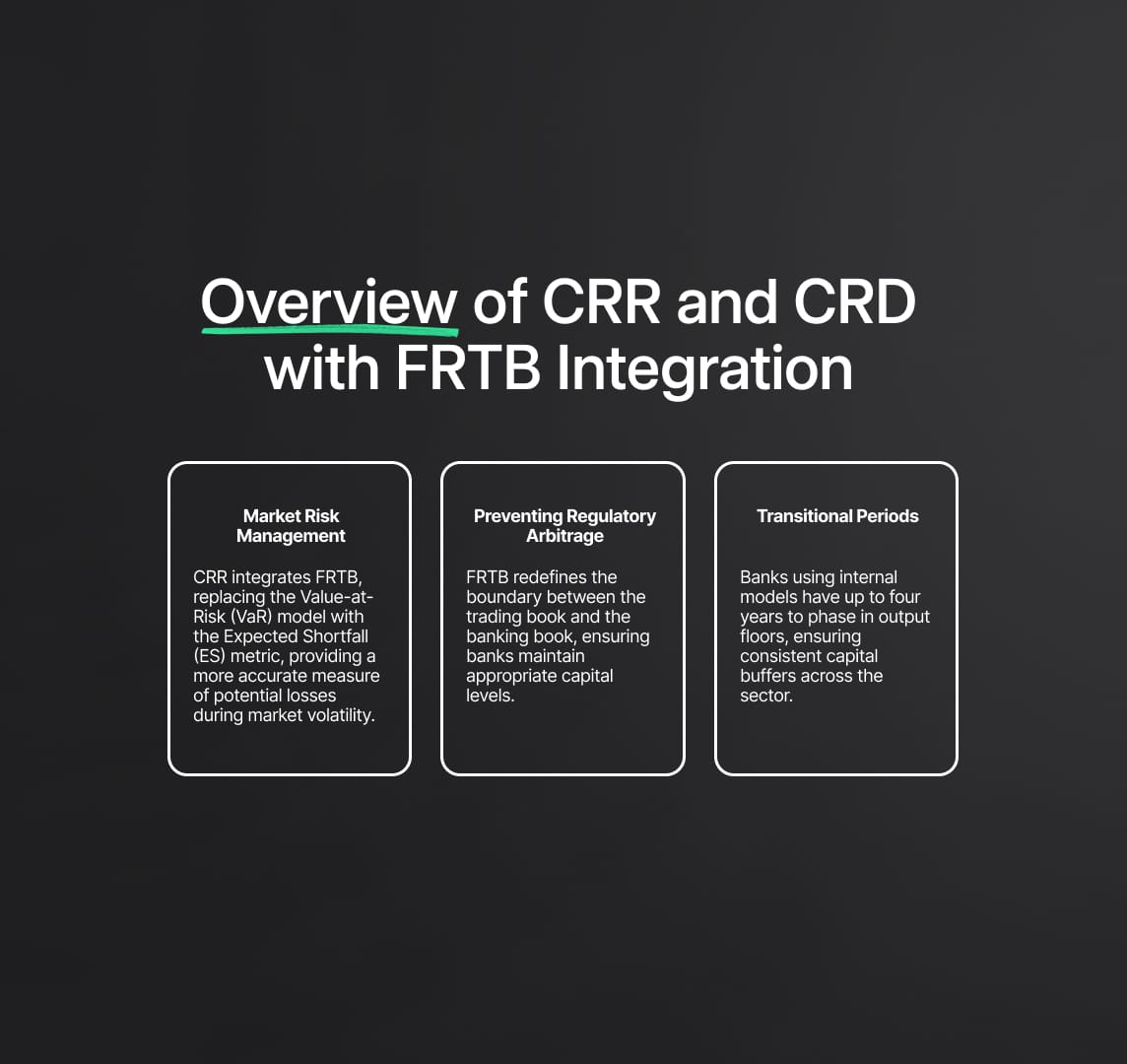 The integration of the Fundamental Review of the Trading Book (FRTB) into the Capital Requirements Regulation (CRR) and the enhanced supervision provided by the Capital Requirements Directive (CRD) mark a significant evolution in how banks manage market risk and allocate capital. These updates, effective as of September 2024, aim to strengthen financial stability across the EU by ensuring that banks maintain sufficient capital to absorb potential losses and manage risk effectively.