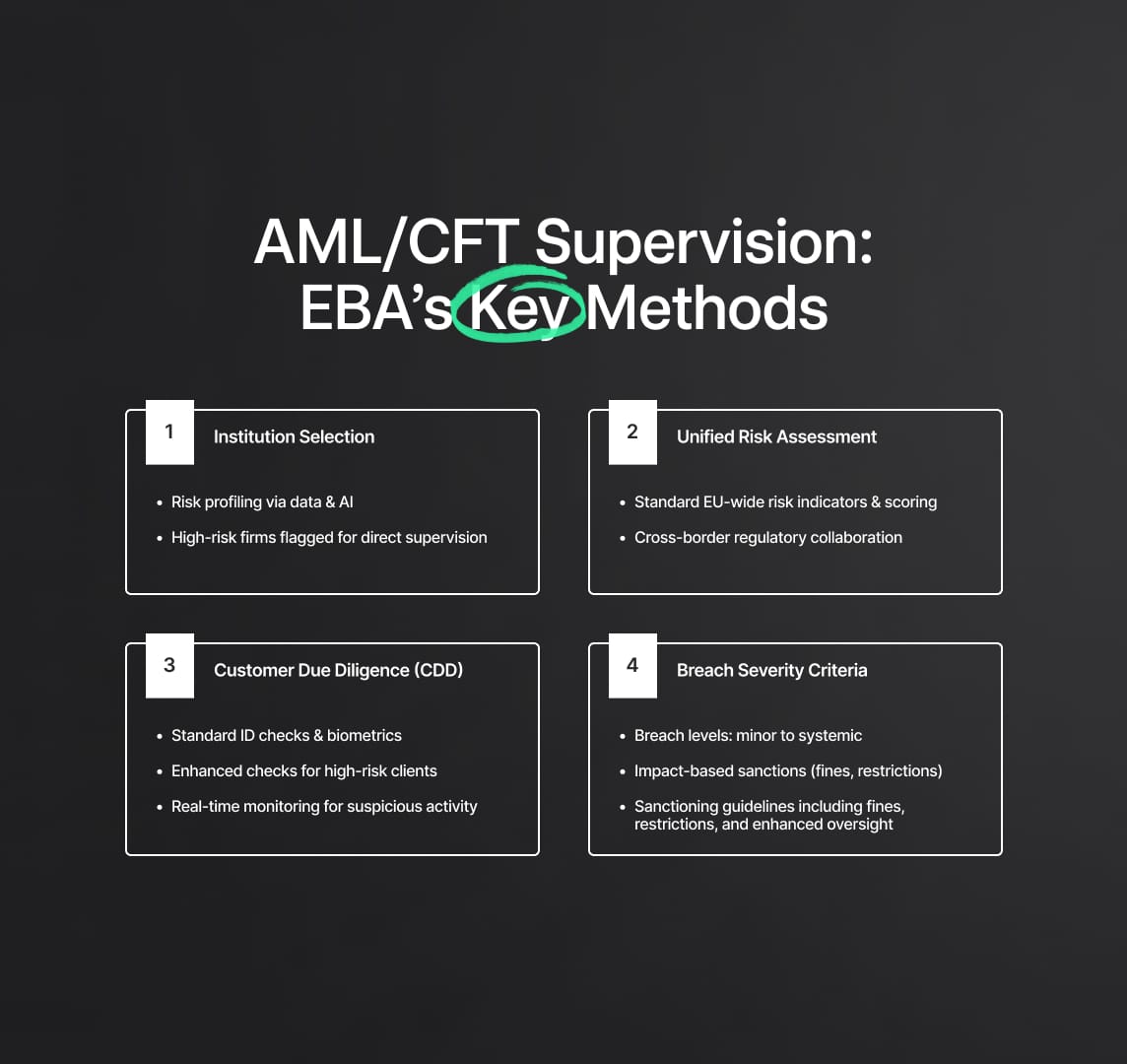 The EBA will define rigorous Customer Due Diligence (CDD) requirements to ensure thorough verification and monitoring of customers. Key elements will include: