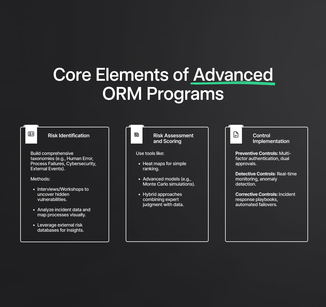 Holistic Resilience Frameworks are emerging, integrating ORM with business continuity, enterprise risk management (ERM), and resiliency planning. This approach transcends departmental silos, preparing organizations for large-scale disruptions, including climate-linked catastrophes or geopolitical tensions.