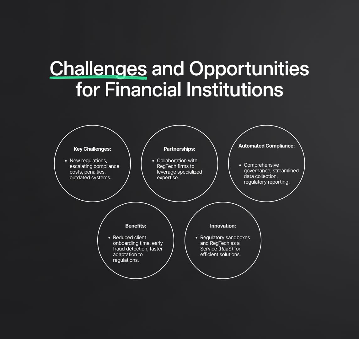 Establishing partnerships with RegTech firms can alleviate these challenges, enabling financial institutions to leverage specialized expertise and a flexible architectural framework to address these evolving risks. Resilient, tech-powered platforms like RegTech offer comprehensive governance and regulatory compliance, automating compliance processes, streamlining data collection, and facilitating regulatory reporting. This leads to an enhanced supervisory capacity for regulators through standardized data formatting, enabling them to effectively monitor sector developments and identify potential risks in a timely manner.