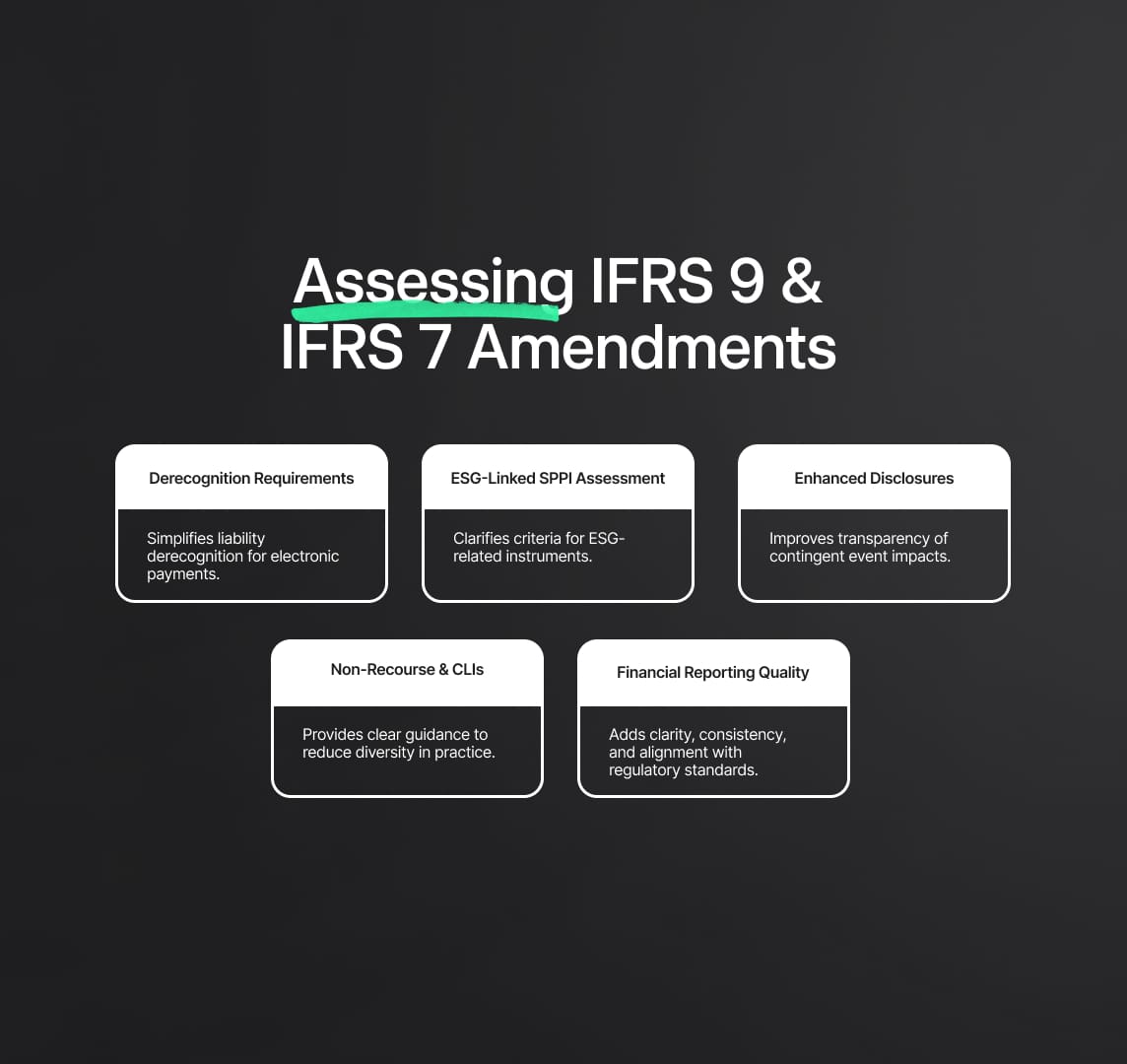 - Clearer Guidelines: The amendments provide specific, actionable guidance on complex areas such as the SPPI assessment for ESG-linked features and the derecognition of liabilities through electronic payment systems. These guidelines help ensure consistent application across entities, enhancing the reliability of financial statements.