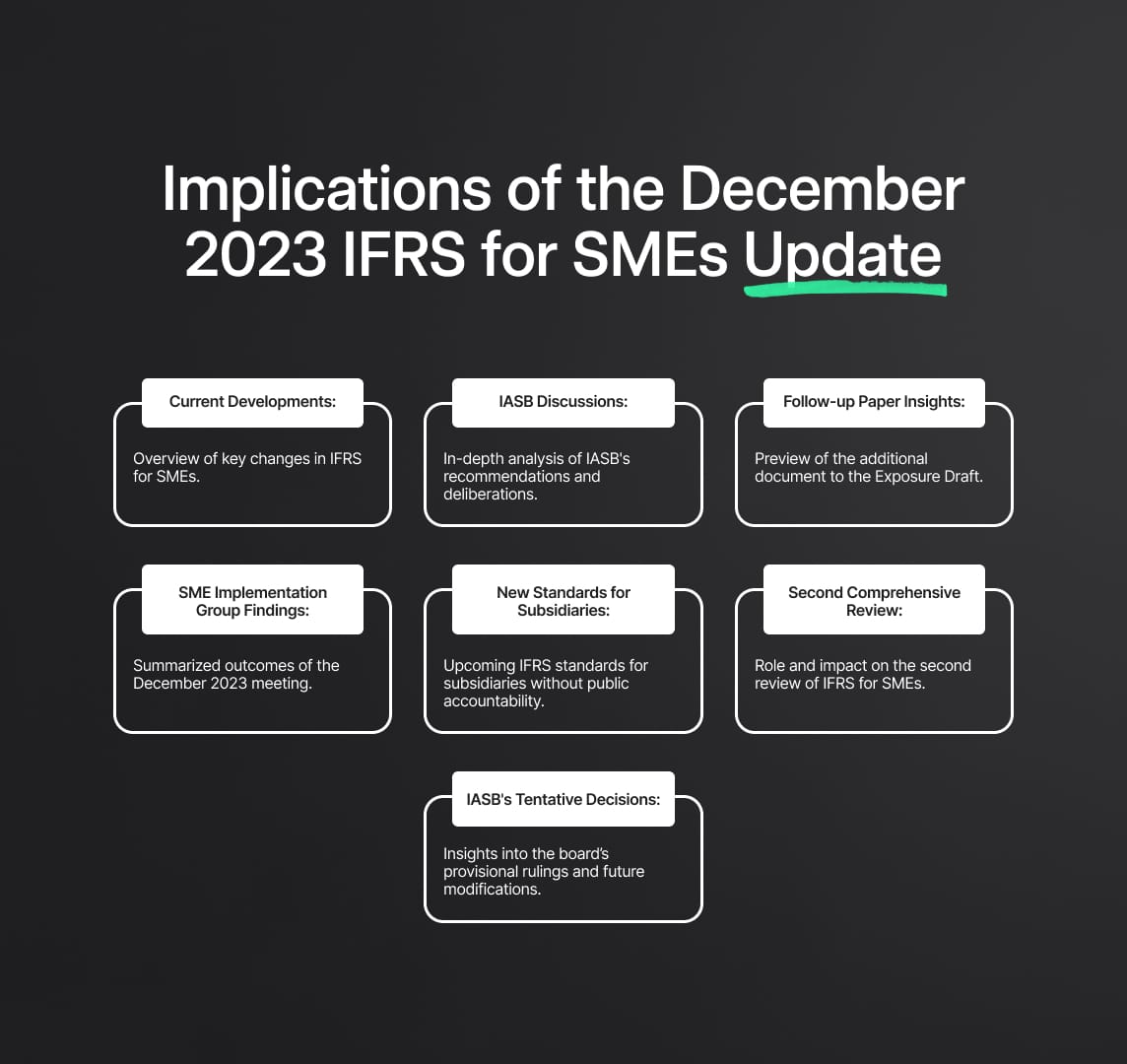 The December 2023 IFRS for SMEs Accounting Standard Update presents crucial advancements in financial reporting. Focusing on SMEs, it details significant changes within the IFRS framework, aimed at improving transparency and ensuring alignment with global IFRS Accounting Standards.