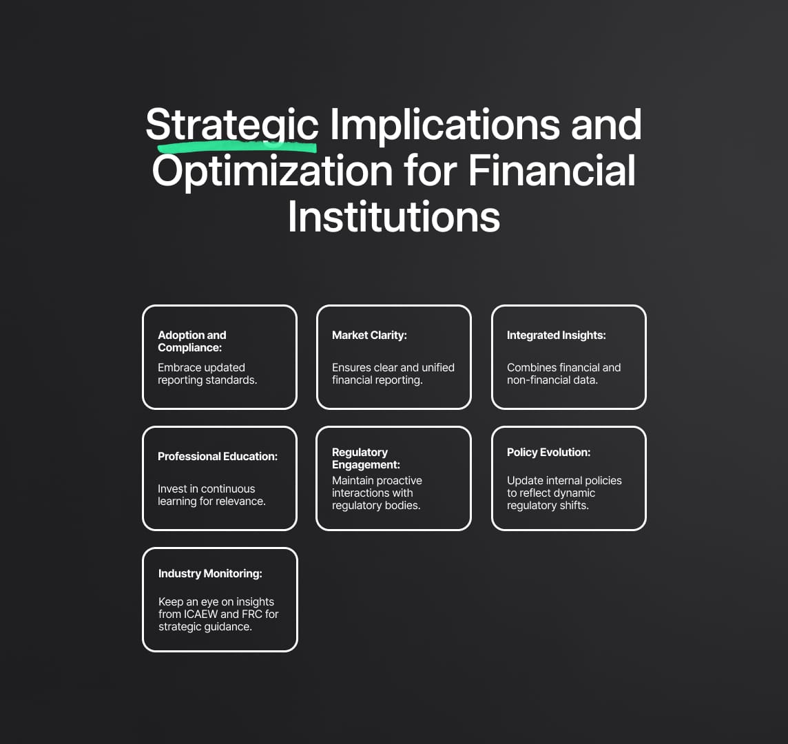Optimizing for the Future: Investing in continuous professional education, being proactive in interactions with regulatory bodies, evolving internal policies to reflect dynamic regulatory shifts, and keeping an eye on insights from industry leaders such as the ICAEW and FRC are all essential for institutions looking to optimize for the future and remain relevant in this ever-changing landscape.