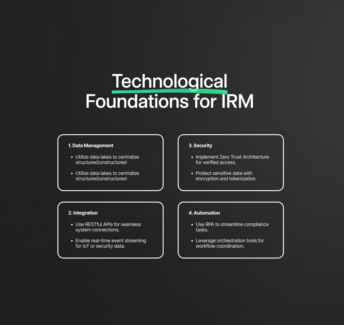 - RESTful APIs link IRM platforms with ERP, CRM, HR and custom apps.