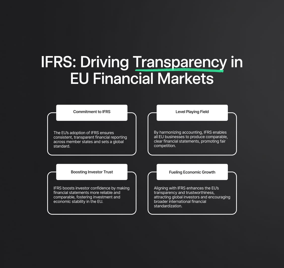 The EU's adoption of International Financial Reporting Standards (IFRS) offers strategic benefits beyond regulatory compliance. It enhances EU companies' appeal to global investors and improves financial decision-making.