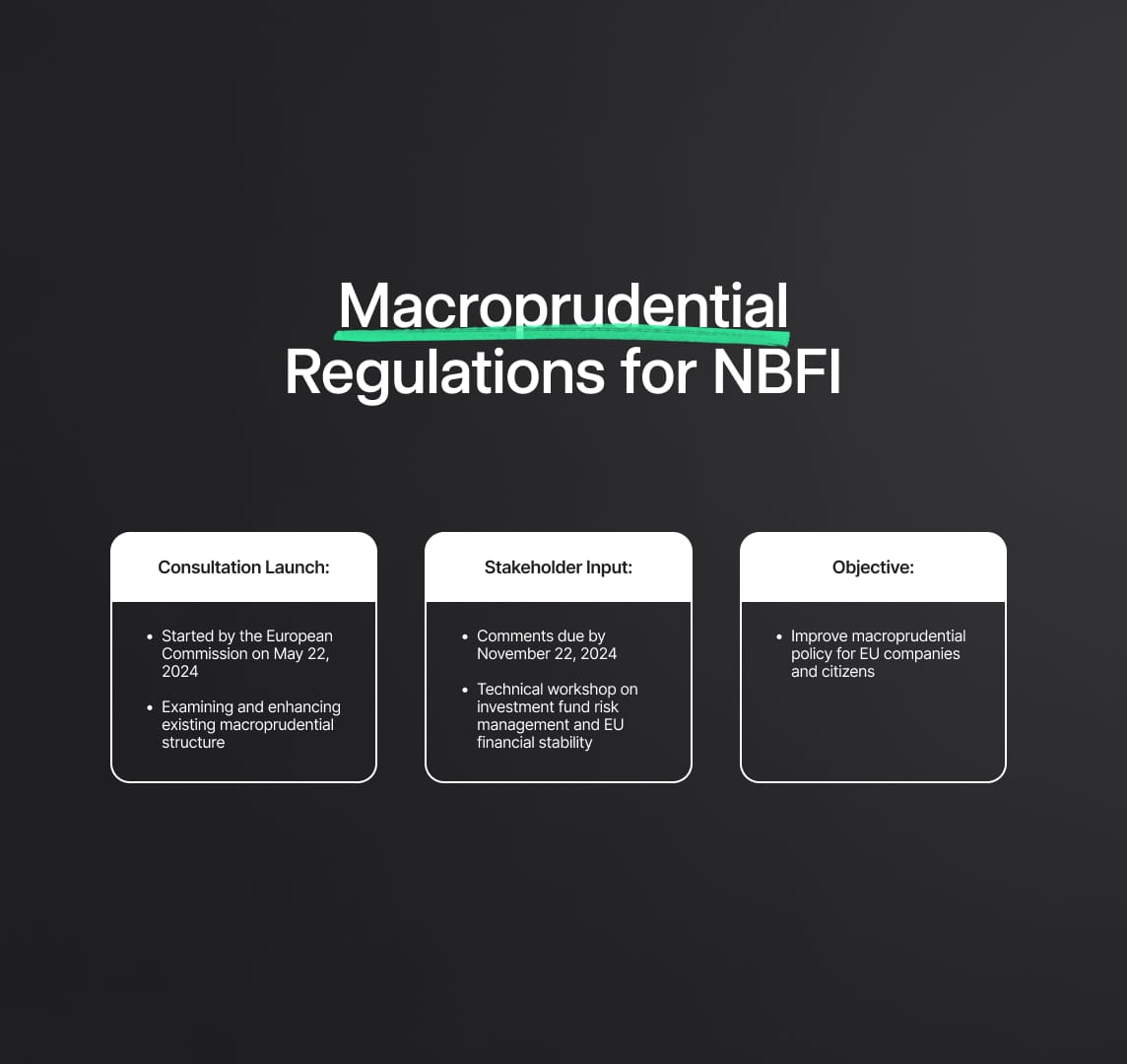 In May 2024, the European Commission initiates a consultation on NBFI macroprudential policies, aiming to address vulnerabilities and improve supervision.