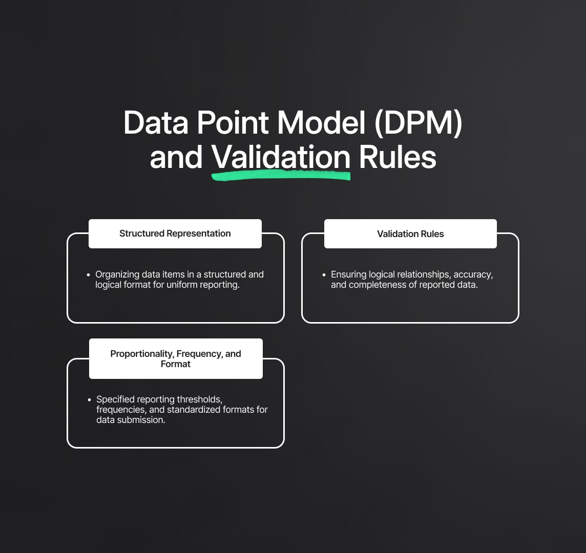 - Technical Specifications: The DPM contains all necessary technical specifications required for developing IT reporting solutions. This includes the structure of data tables, relationships between data points, and technical guidelines for data submission.