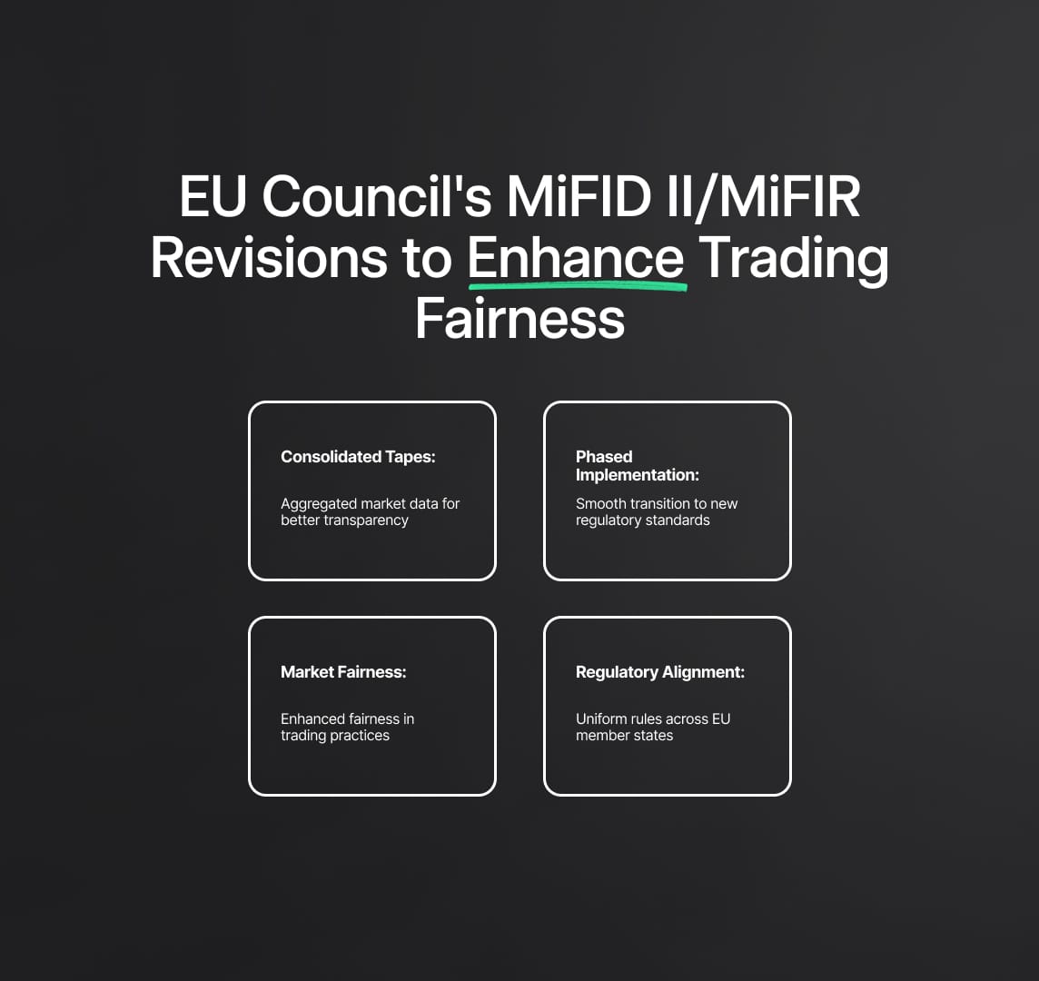The EU Council adopted new MiFIR and MiFID II rules to improve market data transparency, offering better data access, establishing consolidated tapes, and banning payment for order flow, impacting compliance and trading in the EU.