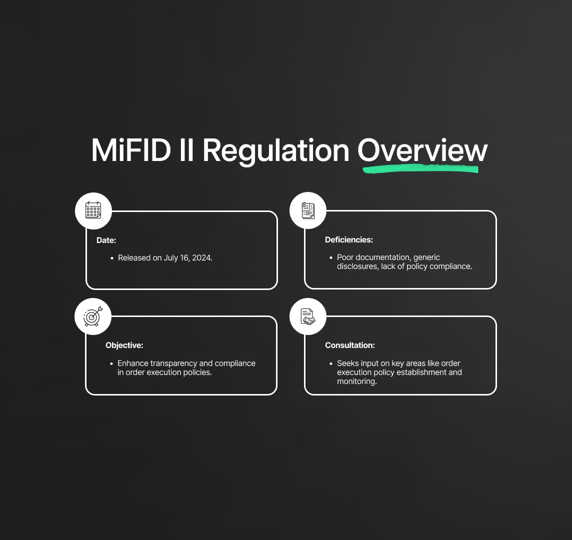 On July 16, 2024, the European Securities and Markets Authority (ESMA) released a consultation paper detailing draft technical standards. These standards outline the criteria investment firms must follow to establish and assess the effectiveness of their order execution policies under MiFID II Regulation.