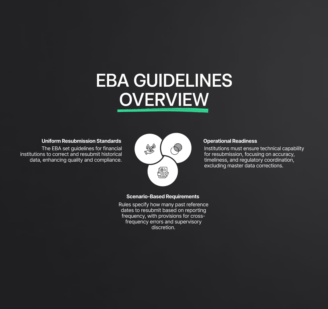 Comprehensive rules have been published by the European Banking Authority (EBA) to make it easier for past data to be resubmitted within its reporting system. The purpose of these rules is to guarantee data correctness and adherence to supervisory and resolution reporting specifications. Apart from providing a broad framework, the guidelines also tackle particular situations where a resubmission is necessary.